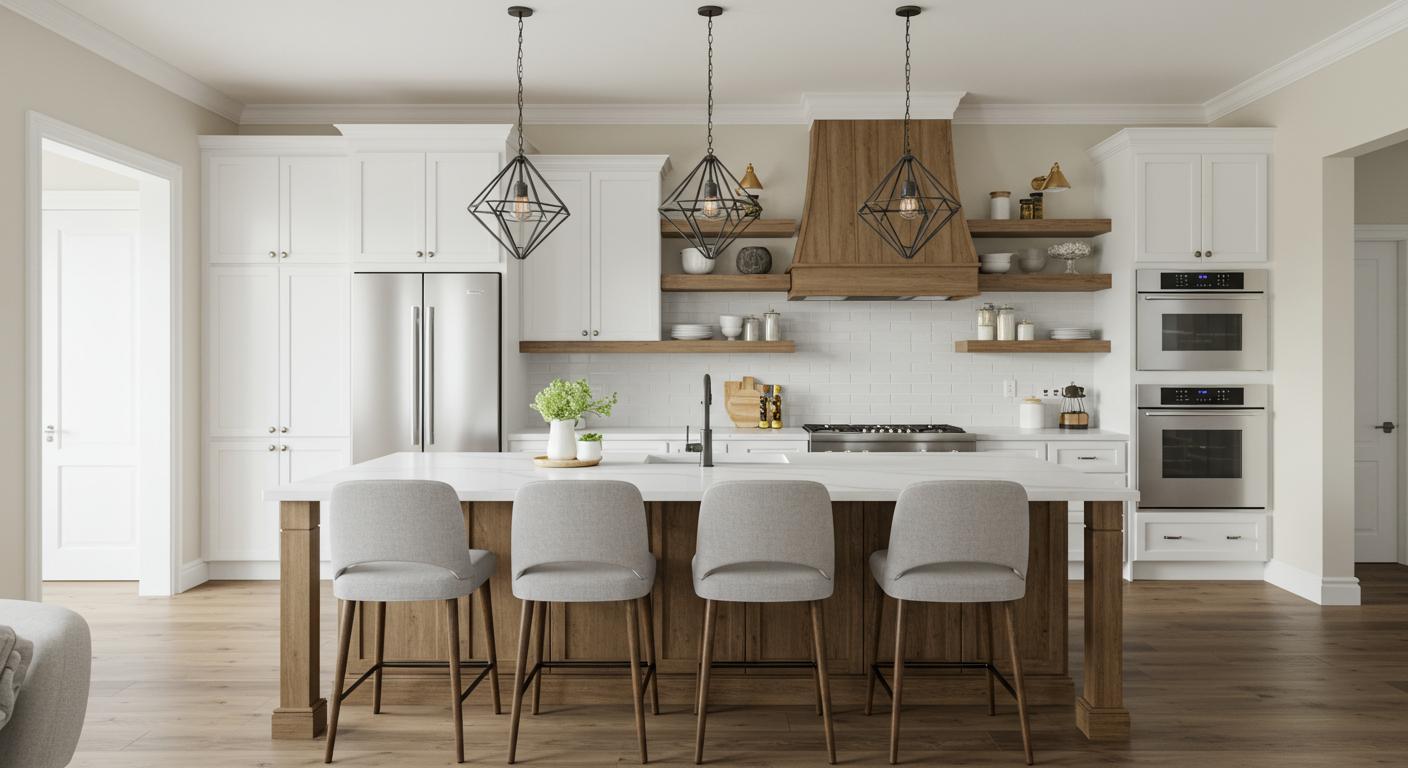 Stepping away from traditional design, modern country style allows for more playful and distinct elements with minimal notes. Wood elements define the modern country design. Wood paneling, wooden floorboards, and classic wooden furnishings are typical features.